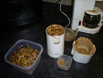 Vroeger op de lagere school in de geschiedenisles kreeg ik les over hoe een oorlog ingrijpt op het dagelijks leven van mensen. Ik las met afgrijzen dat mensen in de tweede wereldoorlog cichorei dronken in de plaats van koffie en bedacht me: dat MOET toch vies zijn. Koffie zelf luste ik toen ook niet, maar dat maakte niet uit. Een oorlog was heel erg, je wordt er doodongelukkig van, want je kunt niets of alleen maar beroerde dingen eten. Dat was de boodschap, dat moest toch duidelijk zijn. Nu onthoud ik mij van koffie om gezondheidsredenen. Dus ik ben op iets anders overgegaan. Juist, cichorei. En verdomd, ik vind het hartstikke lekker! Vooral de caramelvariant in biowinkels. Het is zelfs NOG erger. Ik heb nu omwille van de stimulering van mijn spijsvertering/lever (galstroom)/nieren paardebloemkoffie gemaakt, je leest het goed: paardebloemkoffie. Ik kwam op dit idee door een (amerikaans) boek dat ik las over leverreinigingskuren. Wat ik weet is dat veel darmproblemen eigenlijk voortkomen uit problemen met de lever. Maar aan de lever merk je dan vaak nog niets omdat die 60% overcapaciteit heeft. Merk je wel iets aan je lever, dan zit het tegen die tijd al goed fout... Ik had al wel eens gehoord van eikeltjescacao, die heb ik nog nooit geprobeerd ook. Gewoon omdat het idee me nou niet werkelijk aansprak. Maar goed, nu ik mijn grenzen toch al aan het verleggen ben.... Paardebloemenkoffie: hoe maak je die? Gedroogde/geroosterde wortel van een paardenbloem (verkrijgbaar bij de drogist) eerst malen in een koffiemolen en dan een half uur op het vuur met water koken. Het beste maak je zelf uit hoeveel water en hoeveel wortel je neemt. Indicatie: twee eetlepels gemalen wortel op een kwartliter water. Daarna zeven en klaar is kees. Als je zelf aan het plukken slaat: beter niet uit een wei waar vee graast, best in voor- of najaar. Was de wortels goed. Snij ze in plakjes en rooster ze langzaam (half uur?) in een matig hete oven. Maal de blokjes in een koffiemolen na het roosteren en bewaar in een goed afgesloten bus. De paardenbloemenkoffie is helemaal niet zo vies en bitter als ik dacht. Maar smaken verschillen uiteraard, dus hou je niet van bitter, begin er vooral niet aan, tenzij je om gezondheidsredenen bereid bent concessies te doen. Cichorei is lekkerder geef ik toe. Maar het helpt ook dat ik nu weet dat die paardenbloemwortel mijn spijsvertering op gang helpt. Met melk vind ik het geeneens lekkerder. Het is bitter maar dat is koffie ook. Ik las ergens op het internet dat iemand steevast begon te stuiteren na een lurk paardenbloemenkoffie ( http://greenedmonton.ca/dandelion-coffee-taste ). Dus de energieboost die normale koffie geeft, die is ook te verwachten van paardenbloemkoffie. Ik moet zeggen ik heb weinig energie op het moment, er moet toch wel veel gebeuren om mij aan het stuiteren te krijgen, haha. Maar lijkt me wel weer eens ouderwets leuk:-) Ik zou bijna zeggen: kom maar op met die recessie of oorlog: ik ben er klaar voor.... maar dat gaat misschien net wat te ver:-)