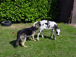 Cycleslutloos fietsen van Harderwijk naar Apeldoorn, via Twello naar Oene, Epe en Vierhouten weer terug naar het familiebastillon. Net in Epe zie ik een kalf aan de lijn langs de weg. Fotomoment, kreunen mijn verzuurde dijbenen. De herdershond des huizes vindt het aarsje van het kalf reuze interessant. De dijbenen hadden het bij het rechte eind.