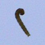 Op de fiets krijg ik zulke koude handen dat ik besluit dat de tijd is aangebroken voor mijn wollen handschoenen. Aan de klink van mijn tuinhek bungelt een rupsje aan een zijden draadje...