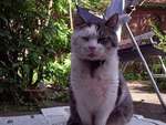 Had het gisteren nog even over hem, Bertus. Mijn vorig jaar augustus overleden kater. Beest dat de schrik van de buurt was. Jaren gezworven in de omgeving van Damwoude in Friesland. Omdat hij zo aardig was tegenover mensen werd hij voorzien van genoeg eten om in leven te blijven. Tegen de katten van deze goede geesten was hij echter minder aardig. Hij moet heel wat andere katers hebben gesloopt. Poesjes konden natuurlijk geen kwaad bij hem doen! Een paar dappere mannen hebben hem uiteindelijk maar gevangen voordat hun katers totaal vernield zouden worden. Op 4-jarige leeftijd werd hij afgeleverd bij het dierenasiel waar hij vrijwel meteen gecastreerd werd. Ex-vriendinnetje deed vrijwilligerswerk bij het asiel en viel meteen op Bertus, en vond het meteen een beest voor mij. Een lekker stoer beest met een stevige kop. In het begin was het de agressieve straatvechter die zich niet in zijn buik wilde laten aaien. Maar dat draaide bij. Zeker toen hij in de gaten kreeg dat ik de hand was die hem voedde. Later is hem me nog wel 2 kaar aangevlogen. De eerste maal toen ik hem weghaalde toen hij een andere kater aan het belagen was. Droeg hem naar mijn tuin, zette hem voor me neer op de grond en liep achter hem aan. De adrenaline zat bij hem nog echter zo hoog dat hij dat laatste niet kon hebben. Draaide zich om en en nam met uitgeslagen klauwen een duik naar mijn bovenbeen. Een grote schreeuw van mij deed hem weer in de realiteit terugkeren, maar ik had inmiddels al wel een aantal gaten in het bovenbeen..... Bijgevoegde fotootje is Bertus onder het bloed na een flinke knokpartij, misschien wel de veroorzaker geweest van zijn infectieziekte...