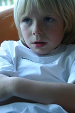 Noah kijkt televisie en zegt opeens: 'Ik denk twee dingen. Ik zie het in mijn hoofd en ik zie het op de televisie.. en ik denk dan dat ik weet dat ik het allebei zie'