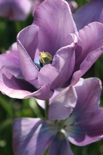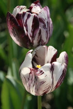 Guarded within the old red wall's embrace, Marshalled like soldiers in gay company, The tulips stand arrayed. Here infantry Wheels out into the sunlight. What bold grace Sets off their tunics, white with crimson lace! Here are platoons of gold-frocked cavalry, With scarlet sabres tossing in the eye Of purple batteries, every gun in place. Forward they come, with flaunting colours spread, With torches burning, stepping out in time To some quick, unheard march. Our ears are dead, We cannot catch the tune. In pantomime Parades that army. With our utmost powers We hear the wind stream through a bed of flowers. by Amy Lowell